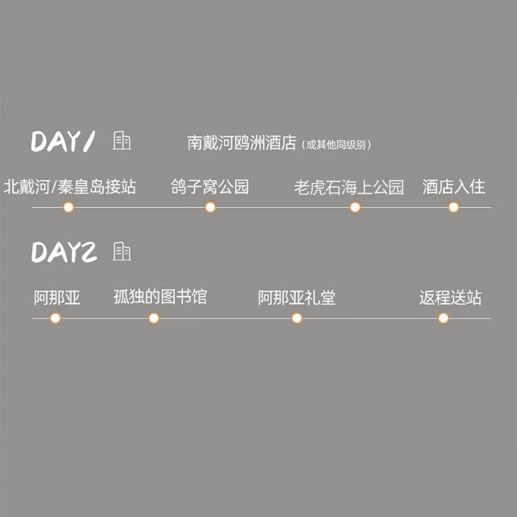 专为差旅人群设计的2天1晚行程,时间紧凑却内容丰富,完美契合出差后的短暂停留或周末微度假需求。从秦皇岛市区出发,轻松抵达阿那亚、鸽子窝等标志性景点,无需长途奔波,即可沉浸于海滨慢生活。高效利用碎片化时间,让差旅不再只是奔波,更添一份诗意与松弛。