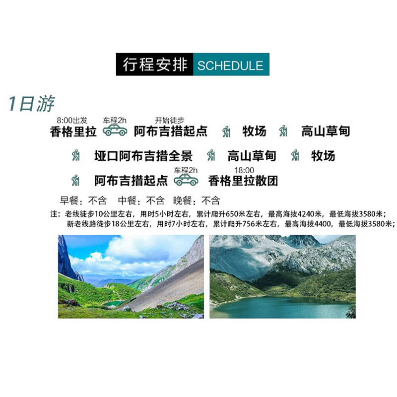 行程设计为紧凑的一日游模式,清晨出发、傍晚返回,完美嵌入差旅日程间隙。无需额外请假或调整会议安排,即可深度体验香格里拉核心自然景观。无论是上午处理完公务后的下午出发,还是次日早班机前的晨间放松,都能无缝衔接,最大化利用碎片化差旅时间。