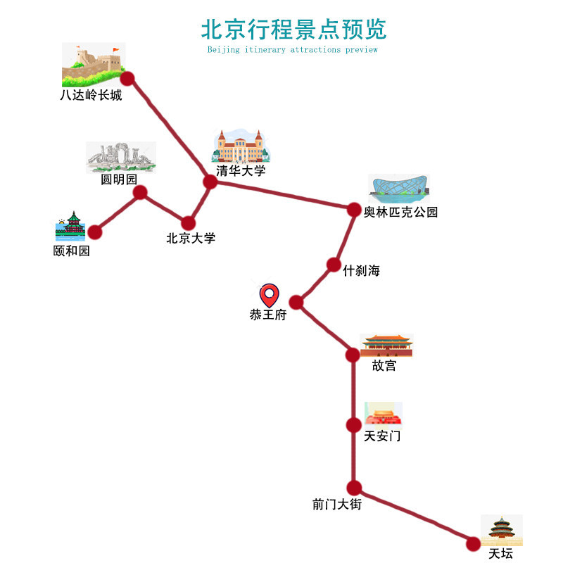 本线路聚焦北京深厚的历史文化底蕴,带您走进紫禁城感受明清皇权,登临八达岭长城体会‘不到长城非好汉’的豪情,漫步颐和园领略皇家园林艺术,探访恭王府了解清代贵族生活。对差旅人士而言,这不仅是一次观光,更是一场高效浓缩的中华文明课堂。