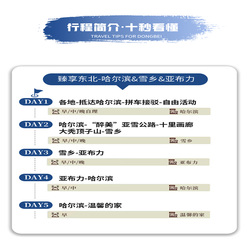本行程支持1人单独预订,无需拼团等待,特别适合出差途中顺道度假或独自出行的商务人士。无论是临时决定放松身心,还是利用周末延长差旅时光,都能即刻启程,省去协调多人时间的麻烦,让您的东北之旅说走就走,兼顾效率与休闲。