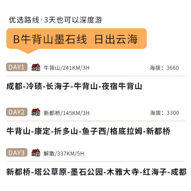 以成都为起点,3天即可完成甘孜、雅安、凉山等多地精华串联,形成高效小环线。无需长途转机或复杂中转,节省宝贵差旅时间。全程由专业司机兼向导带队,路况熟悉、车辆舒适,让您在移动中安心休整或处理工作,真正实现‘说走就走’的轻量化差旅度假模式。