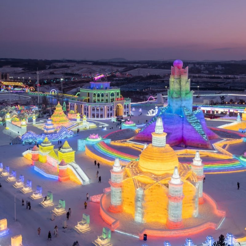 冰雪新天地作为大型冰雪主题乐园,集冰雕艺术、互动游乐与灯光秀于一体。差旅人士可在此释放压力,体验打水仗、泼水成冰等趣味项目,尤其适合冬季出差期间调节身心节奏,在欢笑中恢复活力,以更好状态投入后续工作。