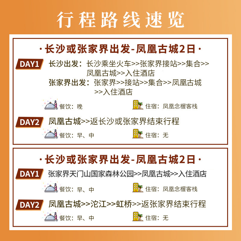 本行程专为差旅人士设计,支持1人单独预订,无需拼团等待,极大提升出行灵活性。无论是结束长沙会议后顺道放松,还是临时安排短途考察,2天1晚的紧凑行程既能高效完成工作交接,又能沉浸式体验张家界与凤凰古城的自然人文魅力,实现商务与度假的完美平衡。