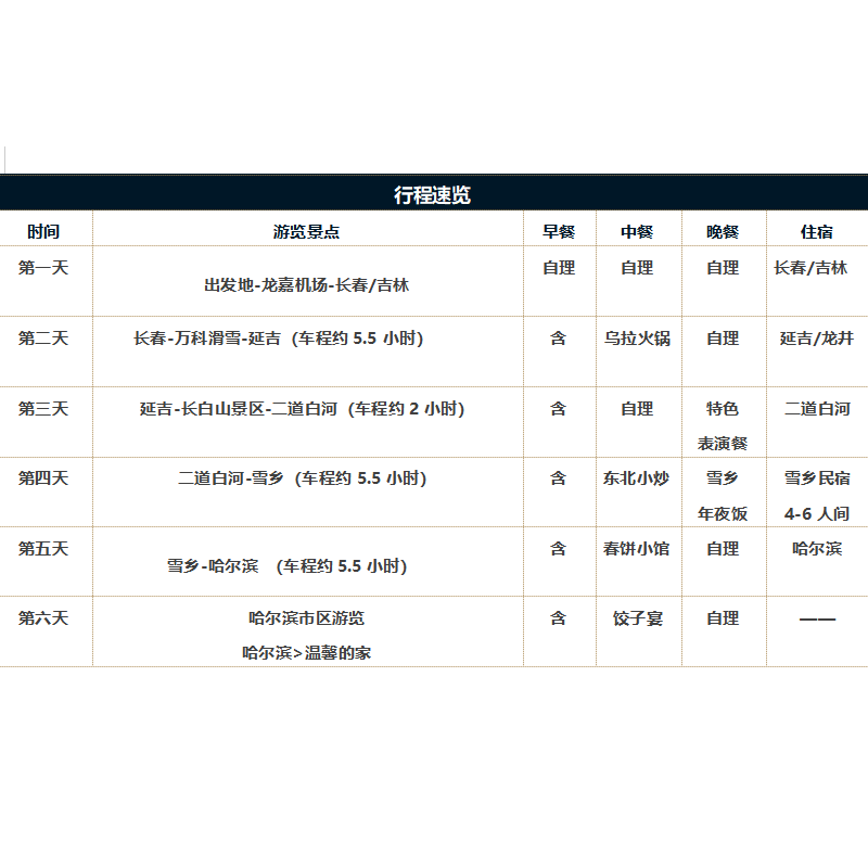 专为独自出差或临时起意度假的商务人士设计,支持单人成行,无需拼团等待。无论您是临时调休、项目间隙,还是周末延展小长假,均可随时下单,即刻启程。行程安排紧凑合理,6天5晚涵盖交通、住宿、门票及特色体验,免除独自规划的繁琐,让您在冰雪世界中轻松切换工作与休闲模式。