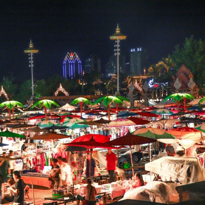 结束白天的公务或观光后,夜晚可沉浸于西双版纳告庄星光夜市的璀璨灯火中。这里不仅是美食天堂,更是手工艺品、民族服饰与街头表演的聚集地。差旅之余感受地道傣族夜生活,为紧凑行程注入松弛感,让商务出行兼具文化深度与休闲乐趣。