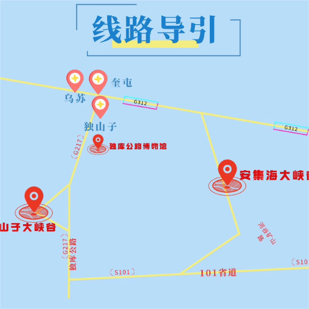 本线路巧妙连接新疆北疆三大城市节点——伊犁、克拉玛依与塔城,特别适合在区域间公务往来途中顺道游览。安集海大峡谷与独山子大峡谷均位于101省道沿线,是新疆著名的公路景观带。差旅途中只需稍作绕行,即可饱览亿万年地质奇观,将通勤路线转化为视觉盛宴,让每一次出差都成为一次深度旅行体验。