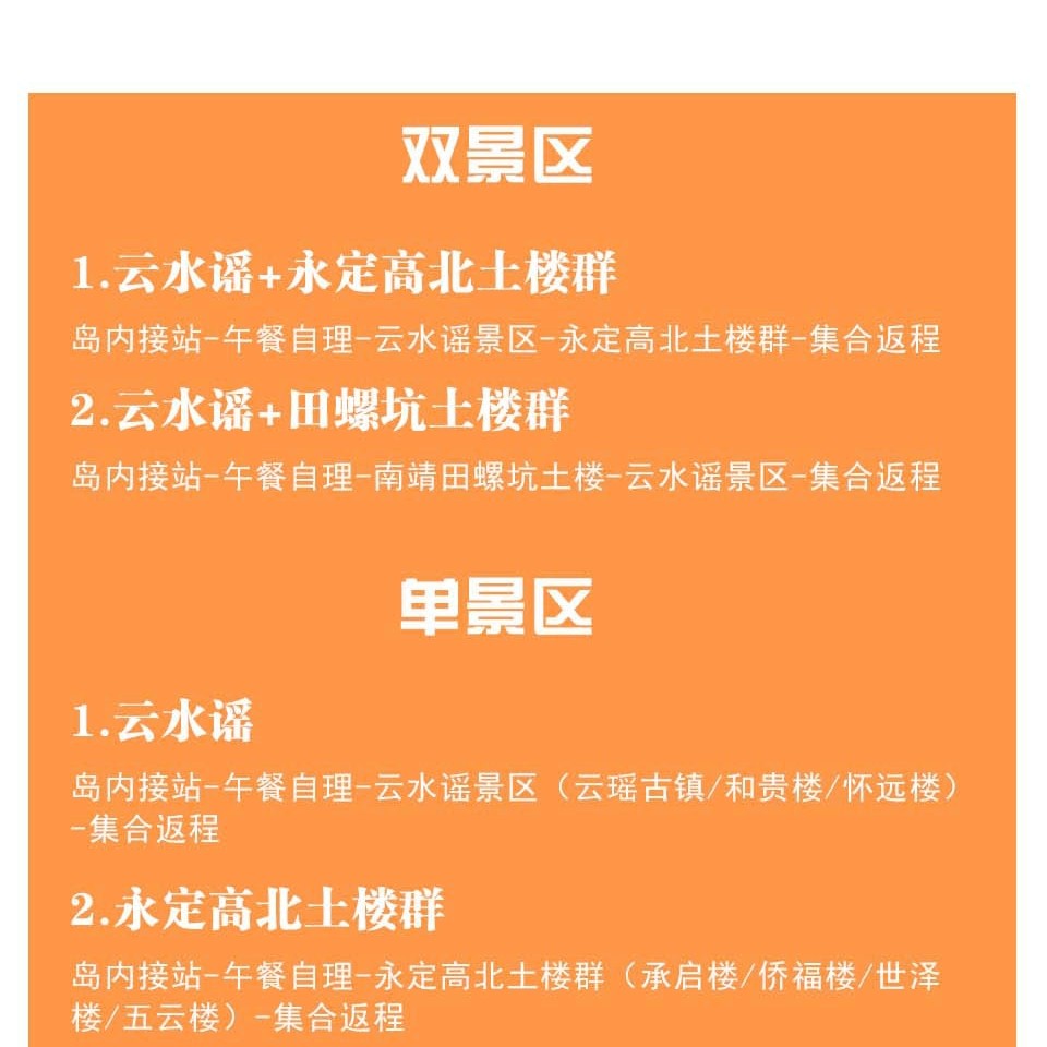 差旅高效衔接:厦门出发当日往返漳州南靖云水谣+永定土楼
