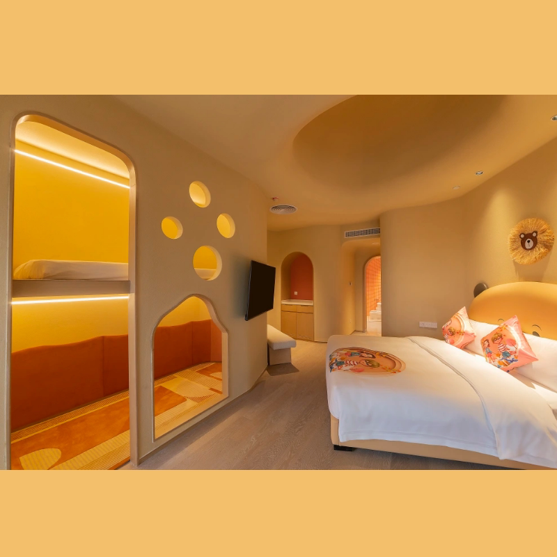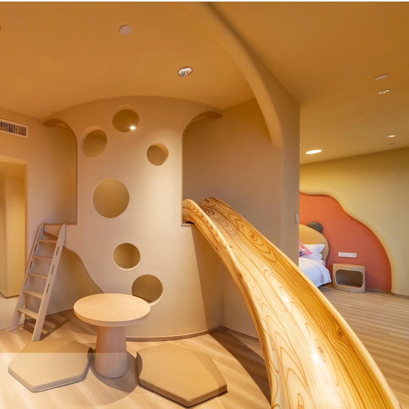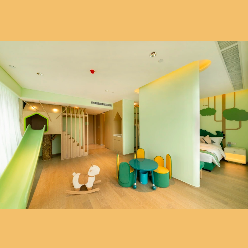 酒店特别打造滑梯主题亲子房,将住宿空间转化为孩子的游乐天地。房内配备安全滑梯、卡通装饰与儿童专属设施,让孩子一进门就进入玩乐状态。对差旅家长而言,这意味着无需额外安排室内活动,孩子在房间内即可释放精力,助您在忙碌之余获得片刻宁静。