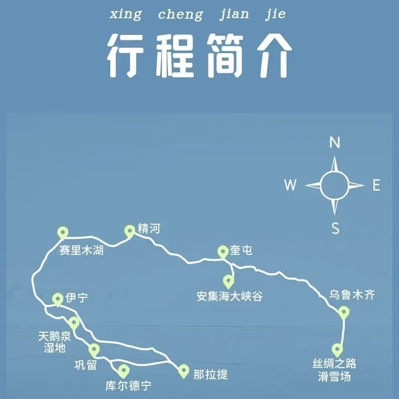 本行程专为兼顾差旅与度假需求的旅客设计,从乌鲁木齐出发,深入伊犁河谷,畅享新疆顶级滑雪场的冬日激情,同时环游被誉为“大西洋最后一滴眼泪”的赛里木湖。行程节奏张弛有度,既适合商务人士短暂休整,又满足深度旅行体验。7天6晚纯玩小团,无需拼团等待,高效利用差旅间隙,实现工作与放松的完美平衡。