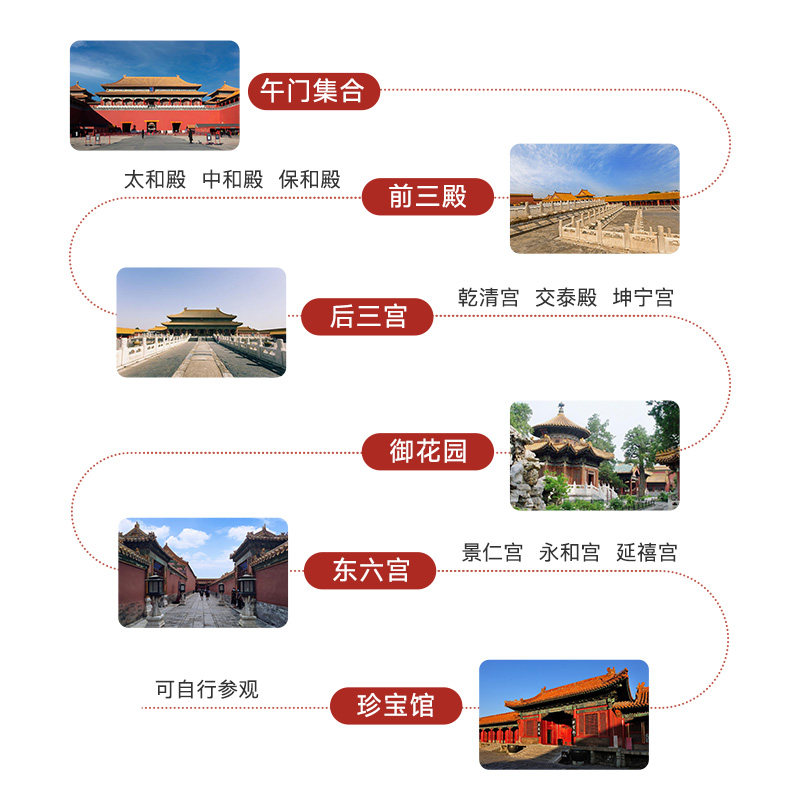 拒绝隐形消费与强制购物,全程3小时纯玩设计,确保每一分钟都用于深度文化体验。差旅时间宝贵,我们剔除所有冗余环节,只保留高价值历史古建参访与专业导览。让您在紫禁城的红墙黄瓦间,静心感受中华文明精髓,回归旅行本质。