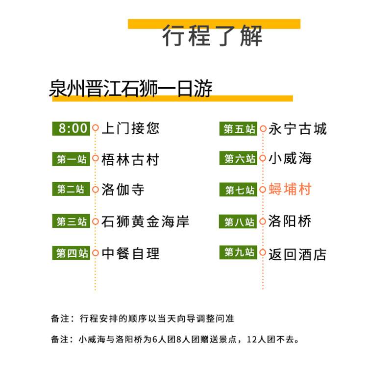 无论您的差旅目的地是厦门还是泉州,本产品均支持两地出发,接驳点覆盖主要酒店及交通枢纽。这意味着您无需绕道或额外安排行程,即可直接从工作地转入度假模式。双起点设计极大提升了便利性,尤其适合在闽南地区多点出差的商务人士,实现‘工作结束即出发’的无缝切换。