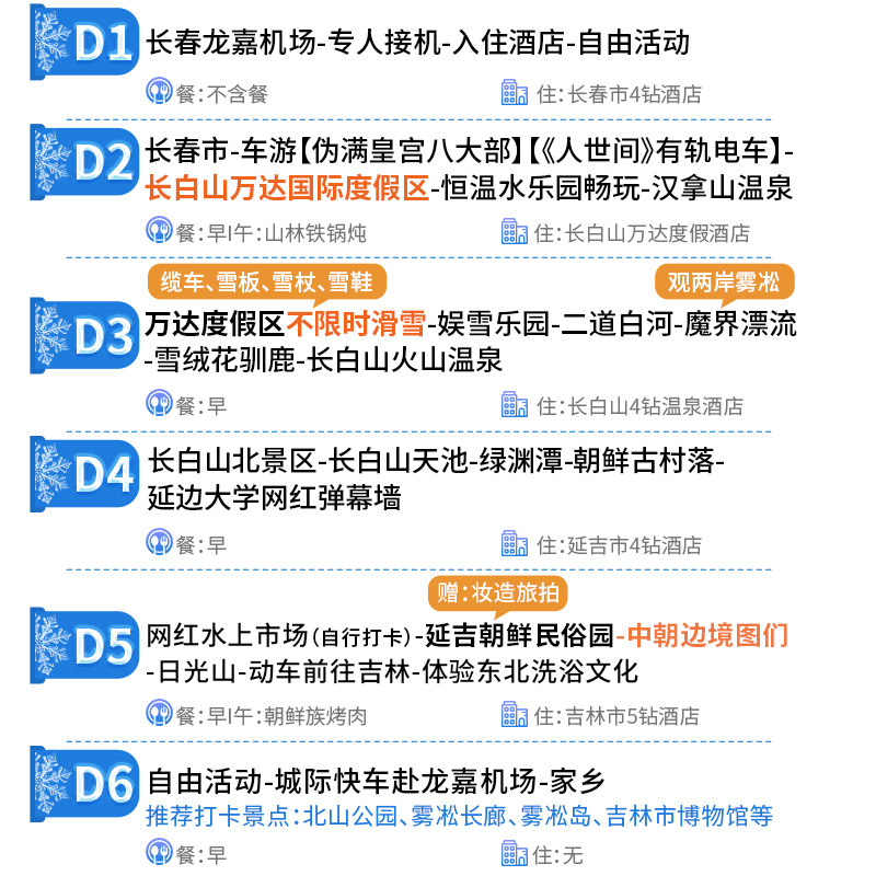 全程配备旅拍摄影师,在天池、魔界、雪场、民族村等标志性场景为您捕捉高质量影像。无论是用于社交媒体展示、企业宣传,还是个人纪念,这些专业级照片都能将您的差旅经历升华为视觉资产。告别手机自拍局限,用镜头语言讲述属于您的东北故事,让短暂旅程留下永恒印记。