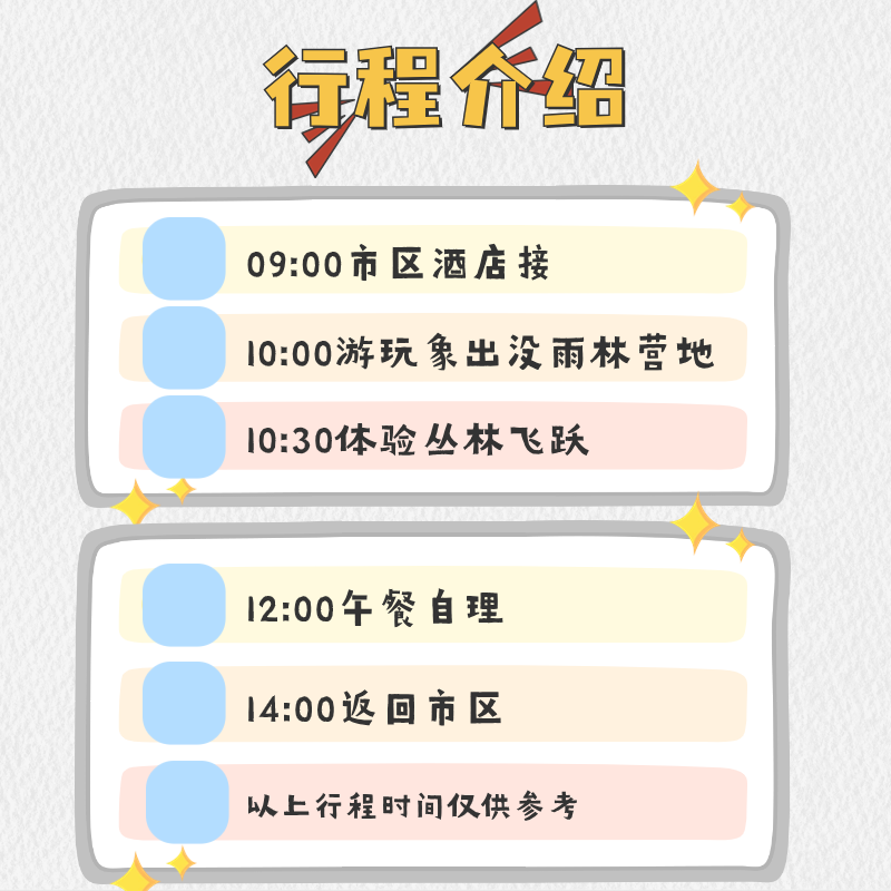 专为商务出差结伴需求打造,本产品支持2人即可预订,无需拼团等待。无论是与同事共同出差,还是邀请客户体验本地特色,都能轻松成行。在紧张的商务洽谈之余,一同挑战丛林飞跃项目,既能增进关系,又能留下难忘回忆,实现工作与社交的双重价值。