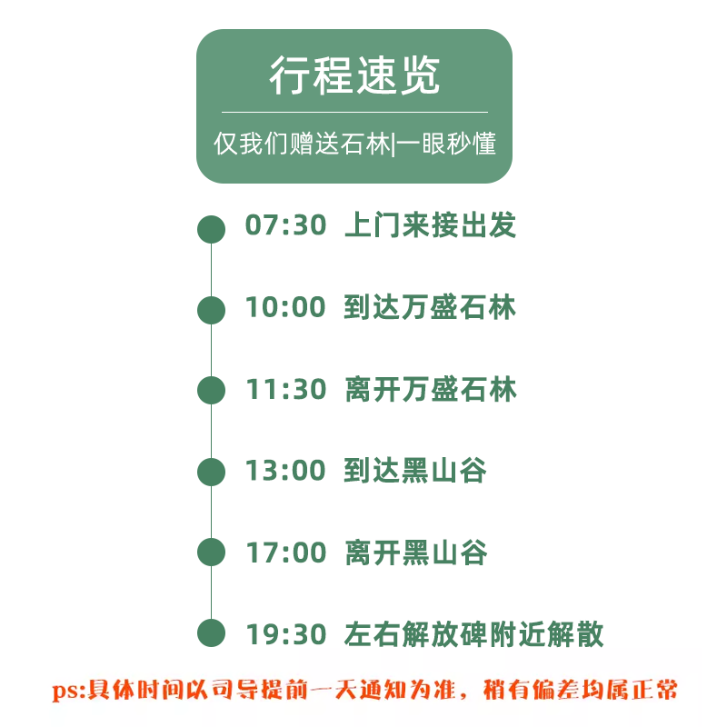 本线路支持1人单独预订,无需等待拼团满员,特别适合商务出差途中临时安排的短途放松或独自旅行者。无论您是结束一天会议后想就近体验自然风光,还是利用周末时间快速逃离城市喧嚣,都能即订即走,省去协调多人时间的麻烦,极大提升差旅期间的时间利用效率与行程自由度。