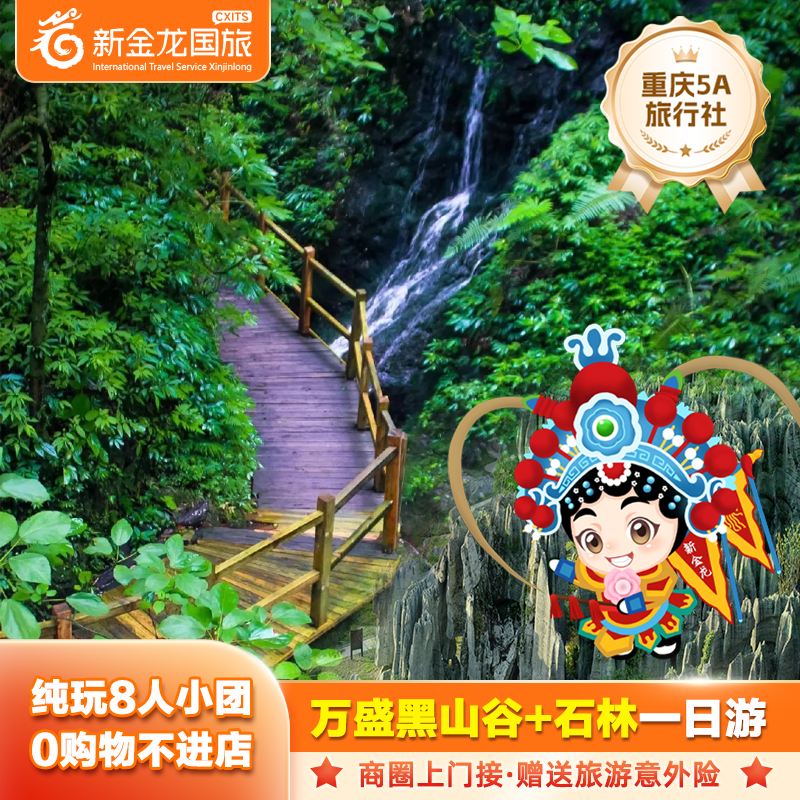本产品巧妙整合黑山谷与龙鳞石海两大国家地质公园资源,在一天内高效游览峡谷奇观与喀斯特地貌奇景。对于时间紧张的差旅人士而言,无需多日请假或长途奔波,即可深度体验重庆近郊最具代表性的自然与地质景观,实现“短时高效、高质度假”的差旅休闲目标。