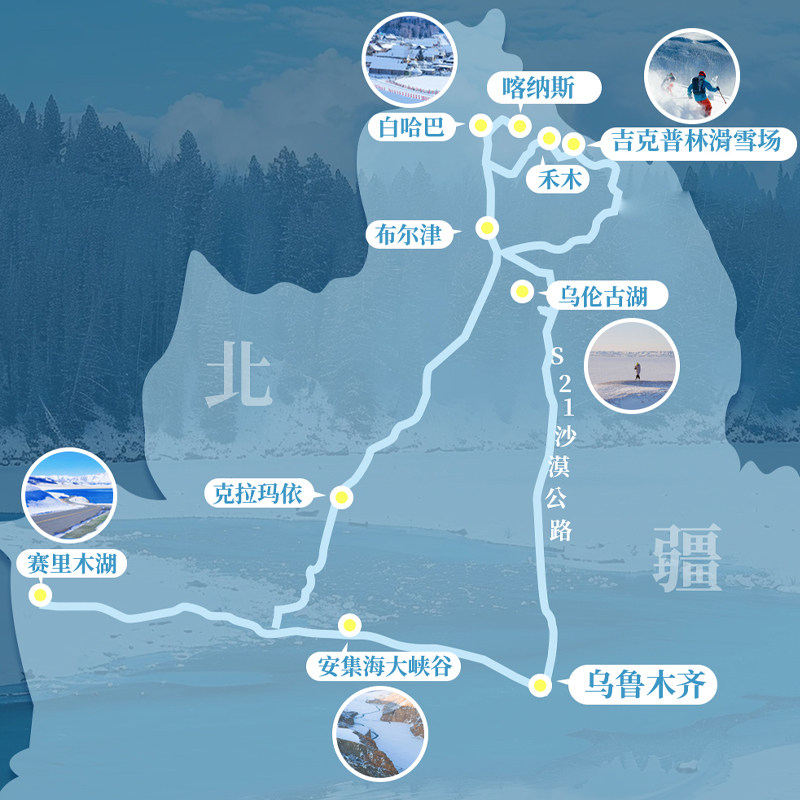 从乌鲁木齐出发,不仅可快速接入国际航班与高铁网络,还能通过精心设计的CityWalk路线深入感受边疆都市的独特魅力。随后转赴阿勒泰、禾木、喀纳斯等地,在冰封湖泊与雪松林海间切换场景,实现从现代都市到原始自然的无缝过渡,满足差旅人士对文化探索与心灵休憩的双重需求。
