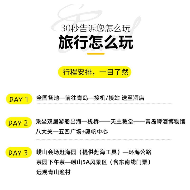 本产品支持1人独立预订,无需拼团等待,特别适合商务差旅人士或独自出行的游客。无论您是临时出差顺道度假,还是希望在工作之余放松身心,都能即订即走,灵活安排行程。小团模式保障服务品质,同时兼顾私密性与个性化体验,让您的青岛之行既高效又惬意。
