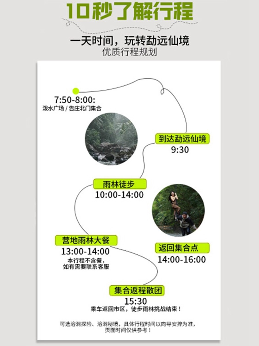 本线路为多档综艺及明星探访过的同款探险地,融合娱乐性与真实性。差旅人士可借此机会体验“明星视角”下的雨林奇境,打卡溜索飞跃、溶洞探秘等热门项目。不仅满足社交分享需求,更能在有限时间内获得高话题度的独特经历,让商务出行不再单调,增添谈资与记忆点。
