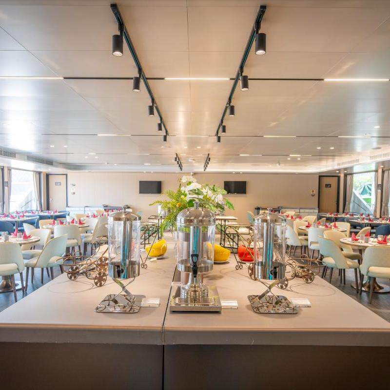 游轮上设有多样化餐饮选择,既有丰盛自助餐满足快速用餐需求,也有地道湖北特色菜肴如清江鱼、宜昌凉虾等供您细品。无论您是赶时间用简餐,还是想在江景餐厅慢享晚餐,都能找到合适选项。这种灵活的餐饮配置,充分考虑差旅人士对效率与品质的双重期待,让每一餐都成为旅途亮点。