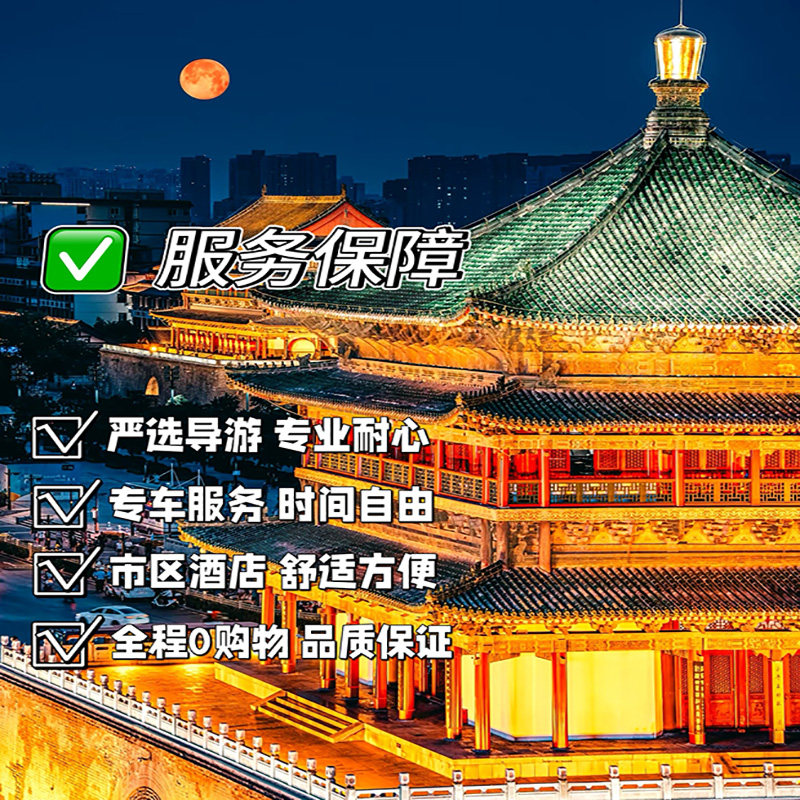 专为独自出差或临时调休的商务人士设计,本产品支持1人即可预订,无需拼团等待,极大提升差旅期间的行程自由度。在紧凑的5天4晚中,您可高效打卡兵马俑、陕西历史博物馆、西安城墙等核心人文地标,兼顾工作与休闲。半自由行模式让您白天专注公务,傍晚或周末轻松融入千年古都的文化脉络,实现高效差旅与品质度假的完美融合。