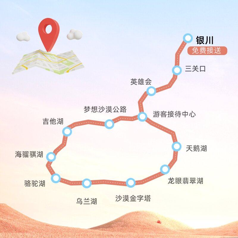本行程专为兼顾差旅与休闲需求的旅客设计,从银川出发,串联青铜峡、沙坡头、66号公路、镇北堡西部影城等宁夏精华景点。全程纯玩包车,灵活安排时间,适合商务人士在完成工作后无缝切换至度假模式。行程涵盖历史古建、沙漠奇观与网红打卡地,既能感受西夏文化厚重底蕴,又可体验沙漠露营与公路驰骋的自由快感,实现高效差旅与深度旅行的完美融合。