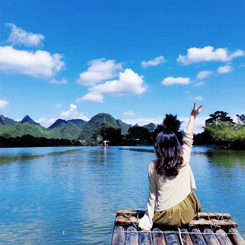 在繁忙差旅中嵌入一段宁静时光——乘坐传统竹筏悠然漂流于清澈见底的遇龙河上,两岸青山如黛,水波不兴。这种低强度、高治愈感的活动特别适合长期伏案工作的商务人士,帮助快速缓解焦虑与疲劳,以更佳状态投入后续工作。