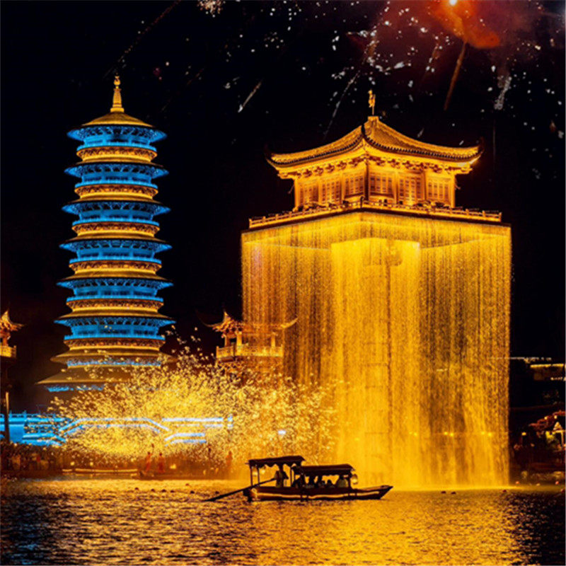 差旅夜间亮点:水上打铁花非遗奇观