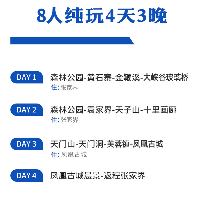 8人小团 张家界旅游4天3晚纯玩天门山森林公园芙蓉镇凤凰古城四日