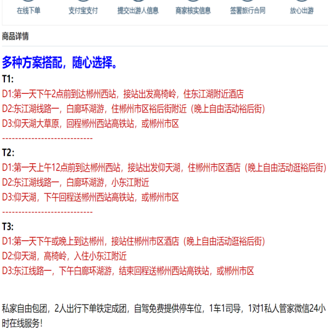 差旅途中携带行李不便?本产品提供全程包团服务,从郴州出发至各景点均有专车接驳,无需频繁搬运行李。酒店连住或合理换宿安排,减少打包次数。导游协助处理所有行程细节,让您轻装上阵,专注享受东江湖的静谧、草原的辽阔与高椅岭的震撼,彻底告别差旅疲惫感。