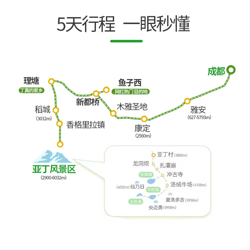 从成都出发,全程专车接送,无缝衔接甘孜州内稻城亚丁、新都桥、墨石公园等核心景点,避免繁琐中转。行程科学规划每日车程与游览节奏,确保差旅人士在有限时间内最大化体验川西高原的壮美风光,既满足高效出行需求,又不失深度探索乐趣。