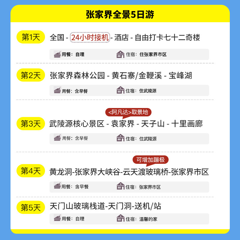 【1单1团】湖南张家界旅游5天4晚天门山玻璃桥森林公园纯玩私家团 - 定制游预订