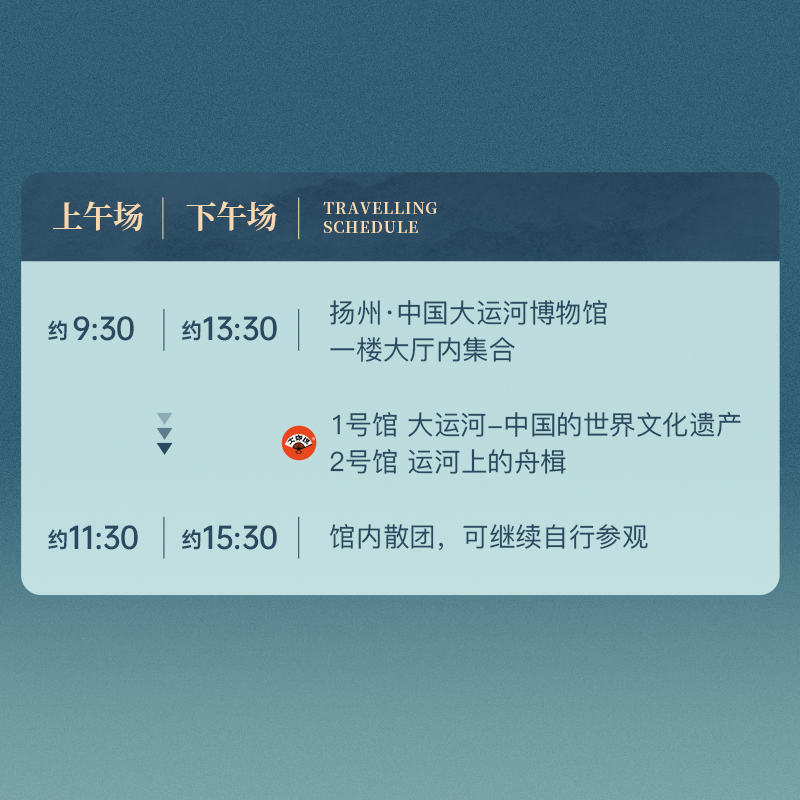 区别于走马观花的常规旅游,本行程聚焦扬州中国大运河博物馆,提供2小时深度导览,涵盖运河历史、水利工程、非遗技艺等核心展区。节奏舒缓、内容精炼,适合在差旅途中安排半日或一日放松。无论是晨会前还是晚宴后,都能从容参与,真正实现“逛博物馆”与“高效差旅”的完美结合。