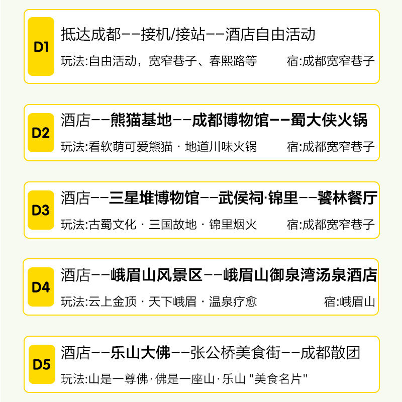 差旅时间优化:5天4晚高效覆盖四川精华景点