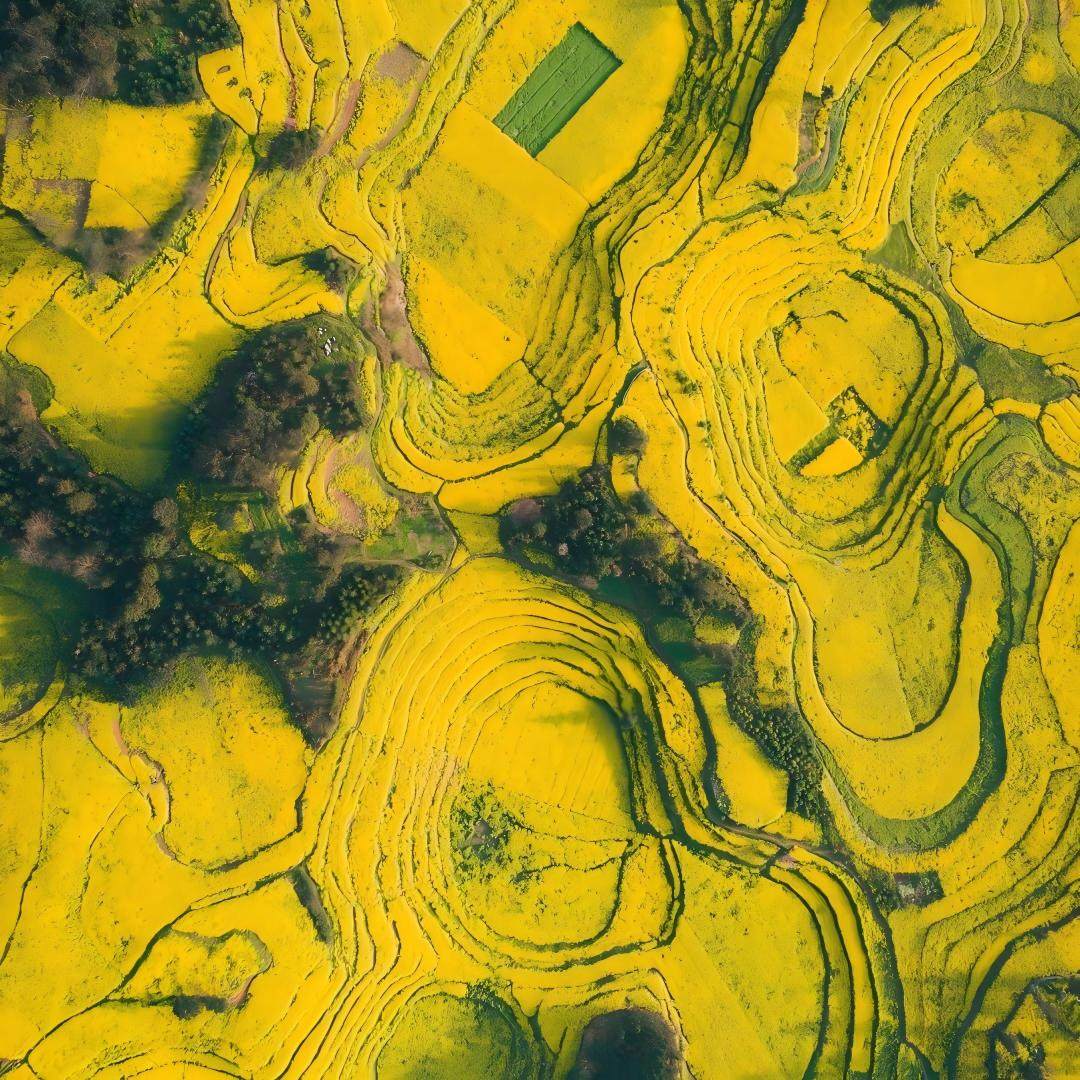 差旅视觉盛宴:早春油菜花海与梯田光影交织