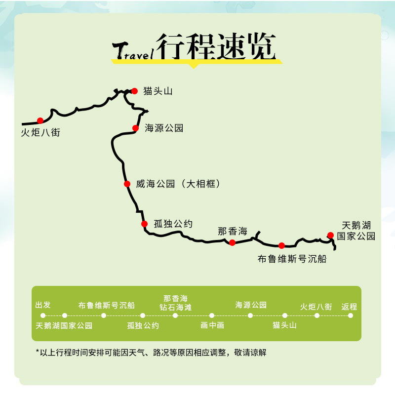 以“山海浪漫”为主题,串联天鹅湖的生态静谧、火炬八街的都市文艺、布鲁维斯号的废墟美学与那香海的碧海银沙,打造多维度感官体验。差旅不再只是奔波,而是一场精心编排的视觉与心灵之旅。即使短暂驻留,也能深度感受威海独有的滨海诗意,为繁忙工作注入灵感与能量。