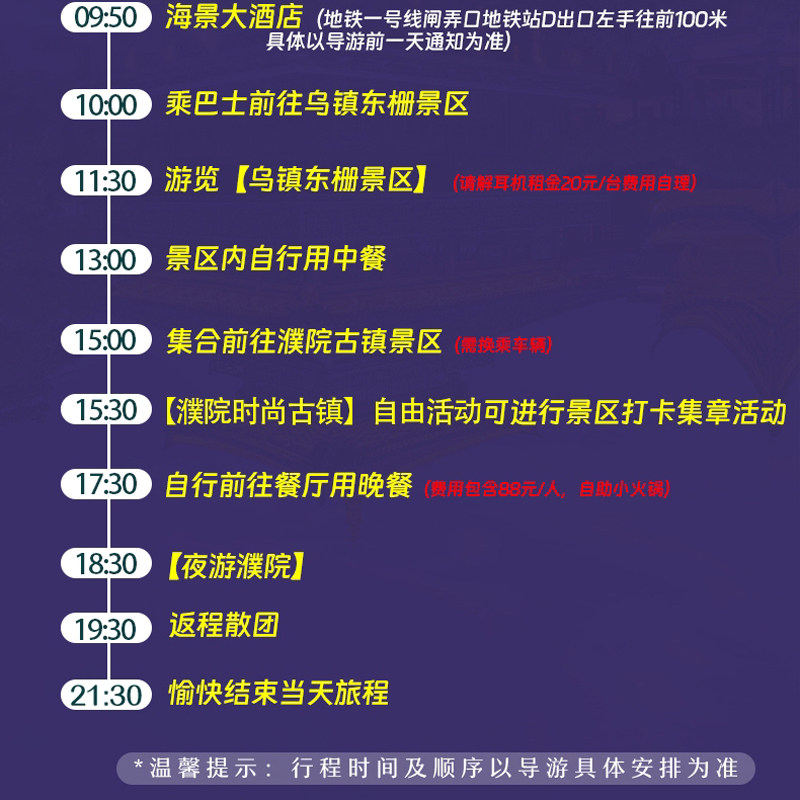 本线路支持1人单独预订,无需拼团等待,极大提升了差旅人士的出行自由度。无论是临时出差间隙的小憩,还是独自探索江南水乡的静谧时光,都能即订即走,灵活安排行程,满足现代职场人对高效与个性化的双重需求。
