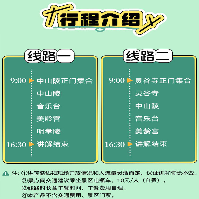 本线路支持单人预订,特别适合商务差旅人士在紧凑日程中灵活插入一日文化休闲行程。无需等待拼团,随时下单、专属导游全程陪同,节省沟通与协调成本。钟山风景区内景点集中,交通便利,从南京市区出发仅需30分钟车程,便于差旅人士利用会议间隙或抵达当日快速完成一次深度文化体验,实现工作与休闲的高效融合。