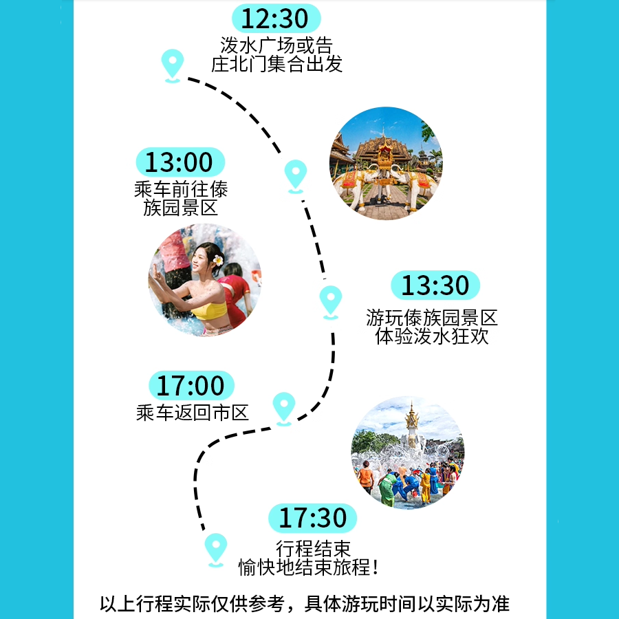 针对差旅人士对时间与预算的高度敏感,本产品承诺‘真纯玩不进店’,全程无购物环节,杜绝强制消费和隐形支出。游客可专注于泼水狂欢与文化体验,无需担心被带入商业场所浪费宝贵差旅时间,确保每一分钟都用在刀刃上。