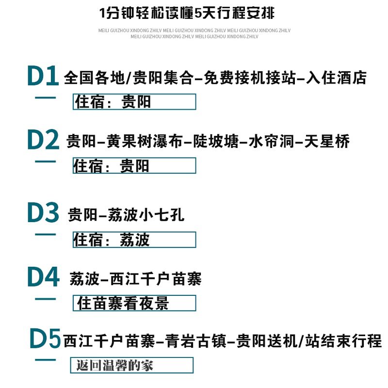 本线路支持1人单独报名参团,无需拼凑人数,极大提升差旅人士的时间灵活性。对于因公出差后顺道度假或独自探索贵州的商务旅客而言,省去了等待成团的烦恼,随时下单即可开启5天4晚的深度旅程。行程涵盖贵阳、黄果树、荔波小七孔、西江苗寨及梵净山等核心景点,兼顾效率与体验,是差旅融合休闲的理想选择。