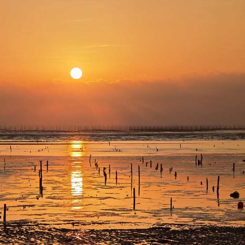 差旅摄影优选:光影滩涂+海上日出,随手拍出大片感