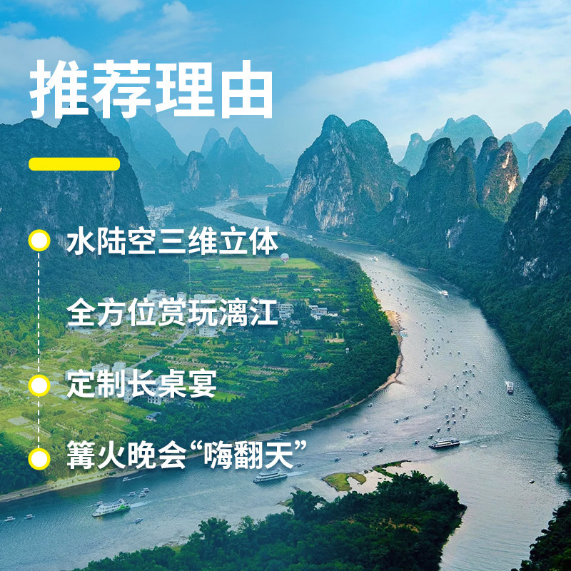 从桂林市区接站、住宿安排到景点门票、交通及餐饮,全程一价全包,无需额外操心琐碎事务。特别适合希望在差旅结束后快速转入度假模式的旅客,真正实现‘落地即享’,把宝贵时间留给体验而非规划,提升整体出行效率与满意度。