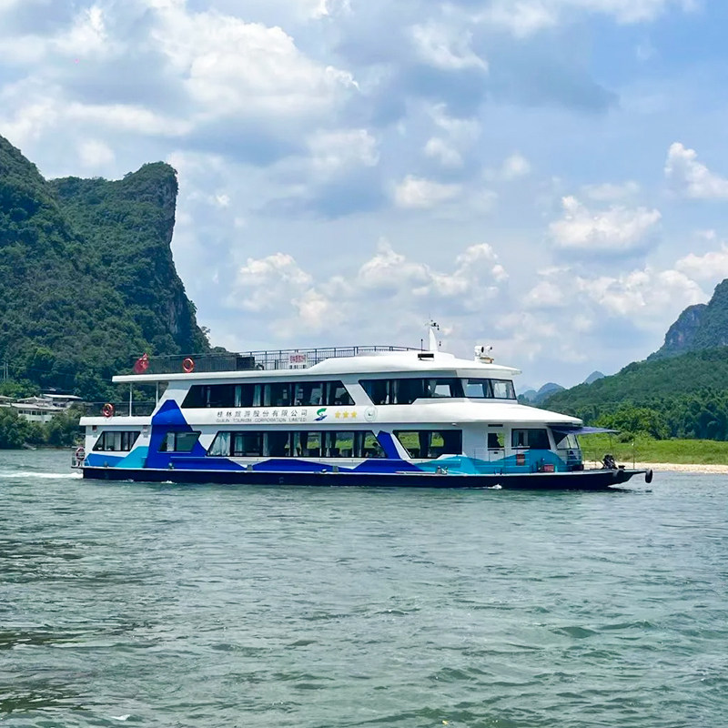 精选漓江三星或四星游船,配备空调、观景甲板、餐饮服务及专业讲解,确保差旅人士在繁忙之余享受舒适、静谧的水上旅程。宽敞座位与全景视野让您在航行中放松身心,同时高效完成对桂林标志性景观的打卡。