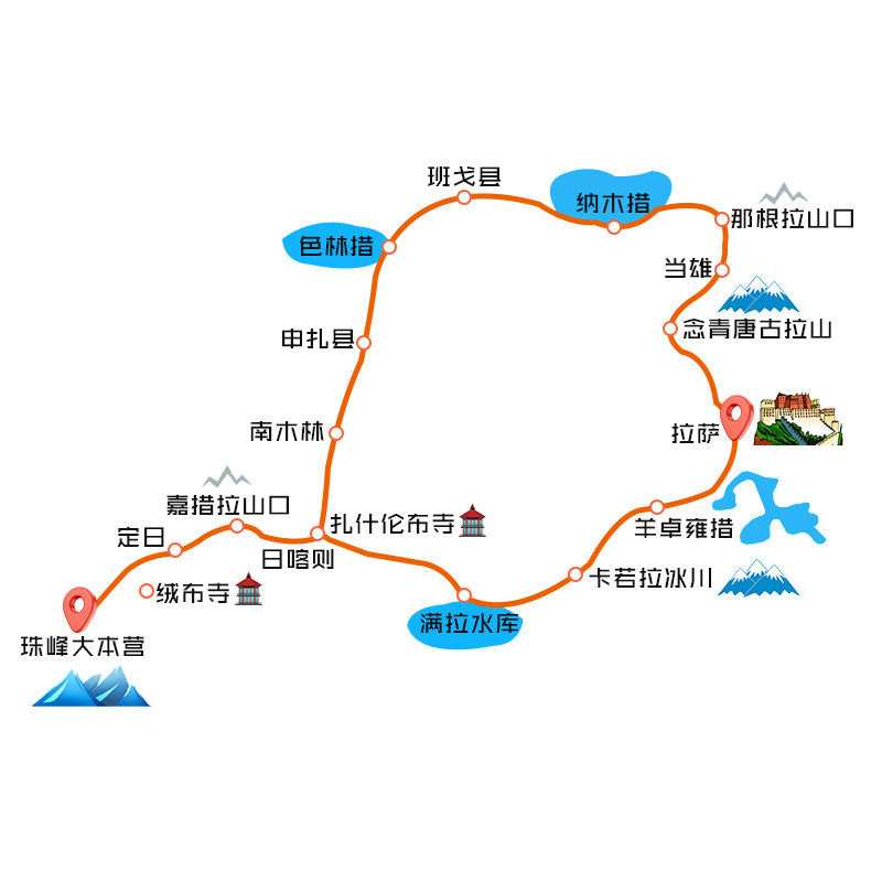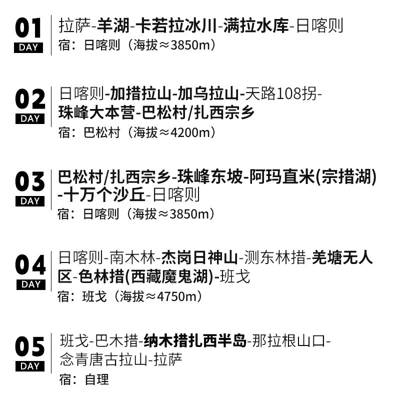 • 差旅高效路线设计:5天环线覆盖三大圣湖神山