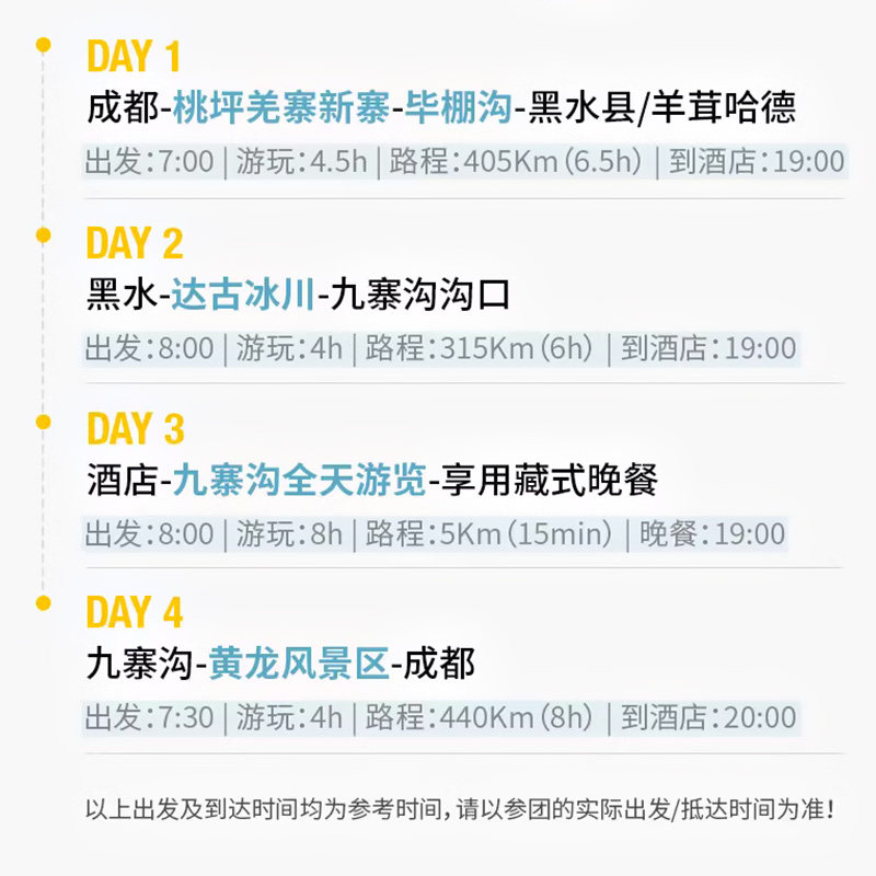 线路以成都为唯一进出点,无论您是乘飞机、高铁抵达,还是本地办公结束后直接出发,均可无缝接入行程。全程包含交通、住宿、门票及导游服务,无需自行协调各环节。对时间宝贵的差旅人士而言,这种“拎包即走”的全包式设计,最大化节省精力,确保从工作模式到度假模式的平滑过渡。
