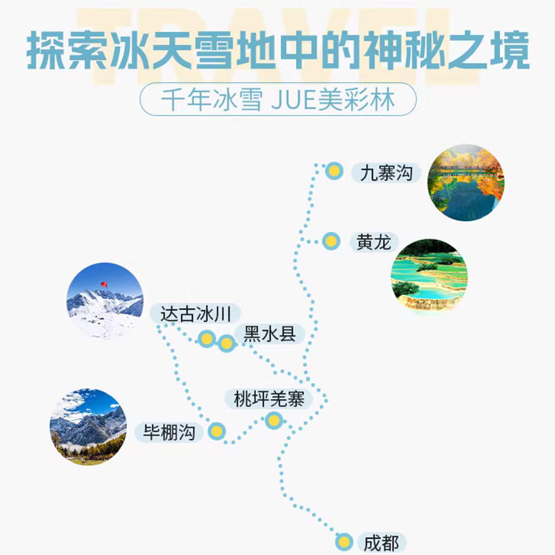 行程涵盖“最近的遥远”——达古冰川,乘坐全球海拔最高的索道直达冰川之巅,俯瞰万年冰原与雪山群峰。对于从成都出发的差旅者而言,仅需数小时车程即可从都市繁华切换至冰雪秘境,实现工作与自然疗愈的极致平衡。冬季银装素裹,夏季冰川晶莹,四季皆宜,是差旅间隙不可错过的视觉盛宴。