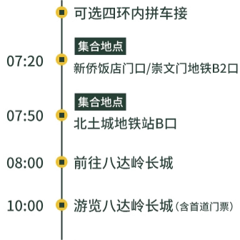 由于出发地与目的地均为北京,本产品无需跨城交通安排,极大简化了差旅人士的出行流程。无论您下榻于国贸、中关村还是首都机场附近,均可便捷集合出发,游览结束后直接返回市区,避免长途奔波。这种“同城闭环”设计,让差旅中的休闲活动真正做到轻松、高效、无负担。