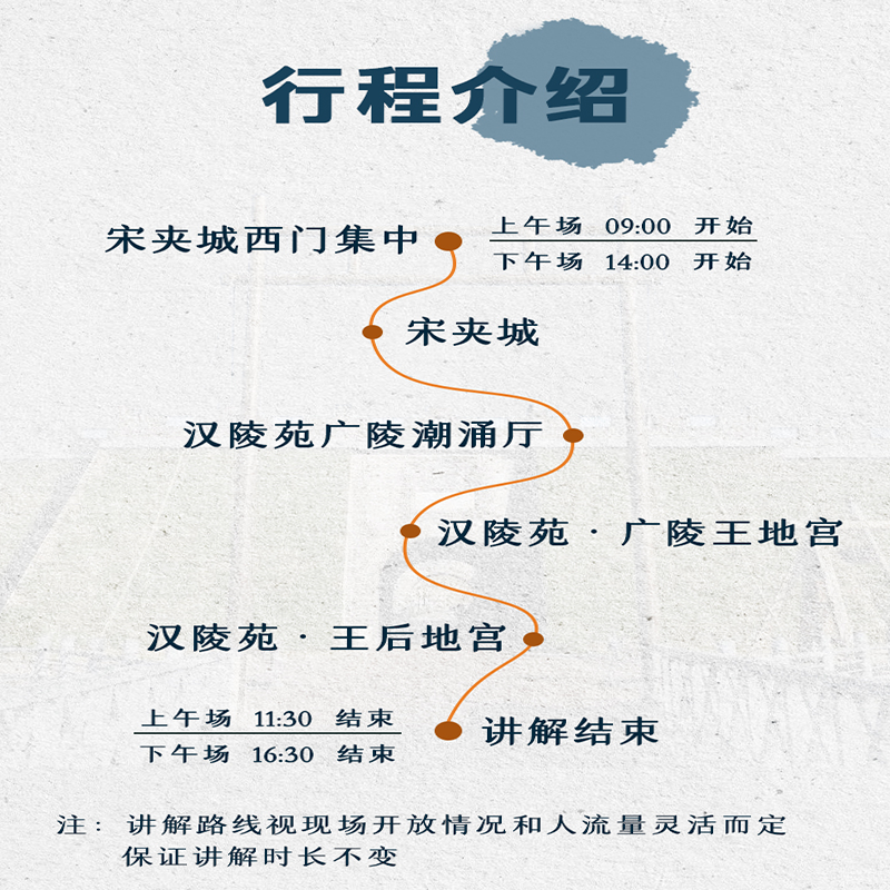 差旅期间精力有限,本产品实现‘拎包即走’式文化体验。包含汉陵苑与宋夹城双景点门票、专业导游全程讲解及包团服务,无需自行研究路线、购票或协调时间。只需确认可用时段,即可在扬州出差间隙无缝衔接一场深度人文之旅,真正实现差旅与休闲的零负担切换。