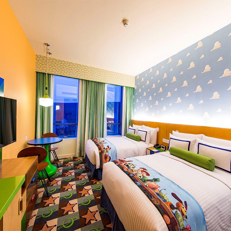 卡通主题亲子房以《玩具总动员》IP元素精心打造,从床品到墙面装饰均还原电影场景,让孩子仿佛置身安迪的房间。对差旅家庭而言,这种高辨识度的主题体验不仅满足孩子期待,更将普通住宿升级为度假核心环节,弥补因工作压缩的亲子时间,提升差旅附加值。