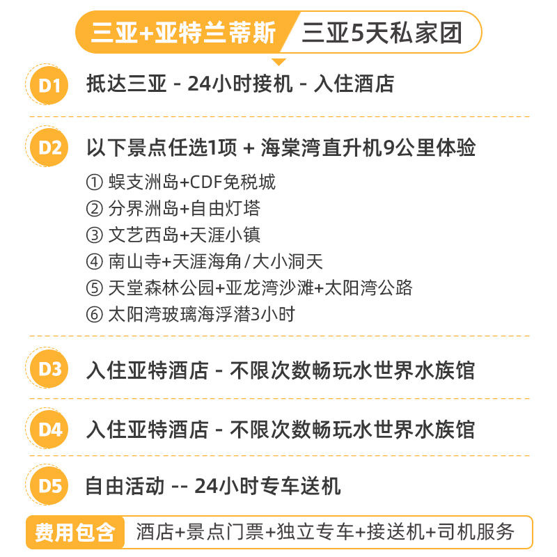 从接机到每日行程,全程配备专属司机与导游,无需自行预约门票、排队或导航。差旅人士可将精力集中于核心事务,其余交由本地专业团队打理。尤其适合首次赴三亚或时间紧张的商务客群,确保每一分钟都被高效利用,提升整体出行价值感。