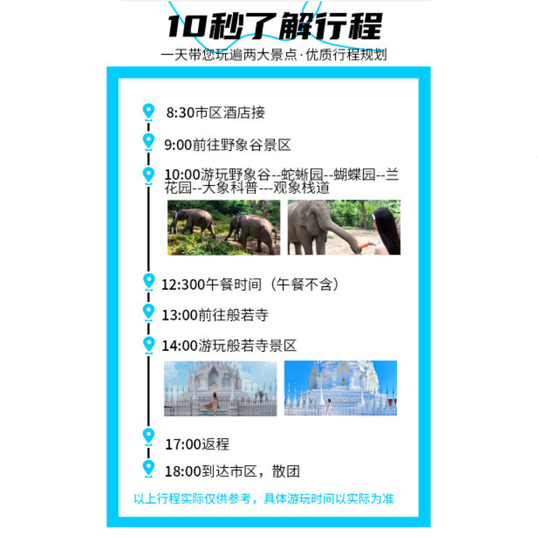 本产品为一日游行程,特别适合在西双版纳出差或中转期间利用空闲时间深度体验当地特色。无需额外请假或调整主行程,上午会议结束后出发,傍晚即可返回酒店,高效利用碎片时间。野象谷与般若寺的组合兼顾自然奇观与人文静谧,帮助差旅人士在短暂休憩中恢复精力,提升整体出行满意度。